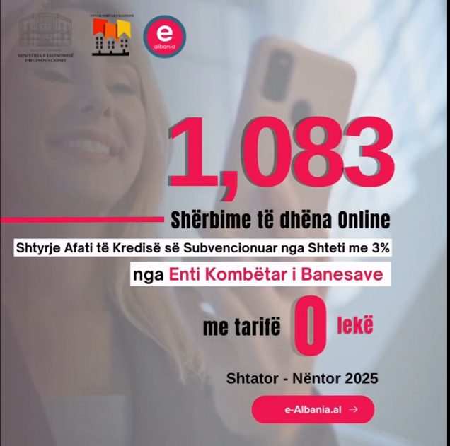 Gjatë periudhës Shtator – Nëntor 2025, Enti Kombëtar i Banesave ka ofruar 1,083 shërbime online për “Shtyrje Afati të Kredisë së Subvencionuar nga Shteti me 3%”, përmes platformës e-Albania.